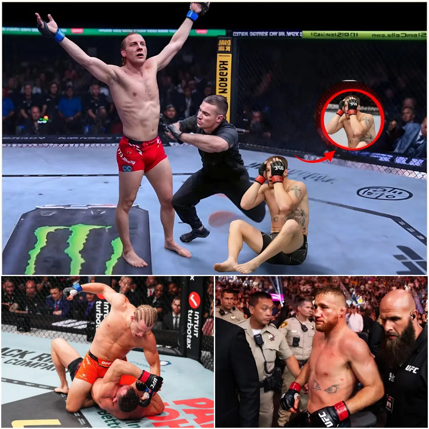 Inside the arena, disbelief spread faster than celebration. Fans sat frozen as Gaethje, a man long considered indestructible, lay motionless on the canvas while Pimblett stood nearby, breathing heavily, eyes wide, fully aware history had just shifted.