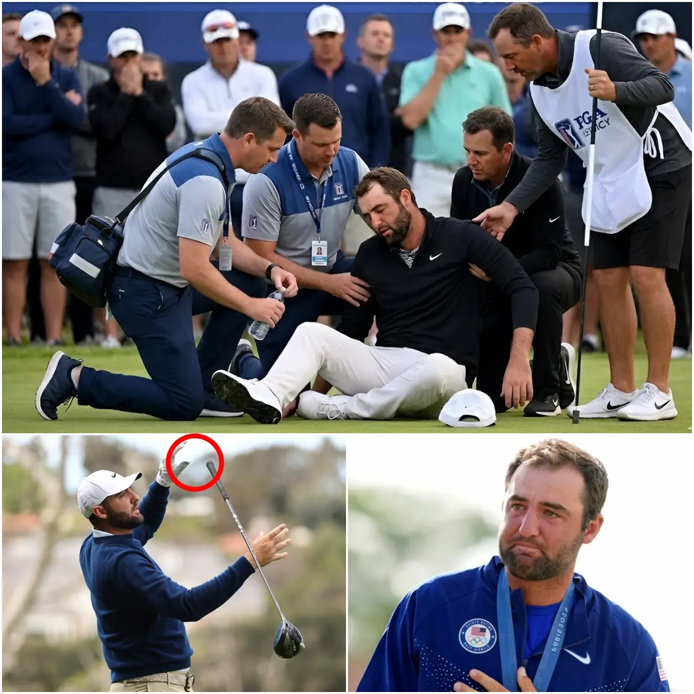 According to multiple eyewitnesses—including fellow pros Collin Morikawa and Xander Schauffele who were practicing nearby—Scheffler was working on lag putts from 40–60 feet when he abruptly clutched his right wrist, winced visibly, staggered backward, and dropped to one knee before collapsing fully onto the green. His caddie, Ted Scott, was the first to reach him, followed seconds later by PGA Tour medical staff who were stationed close by.