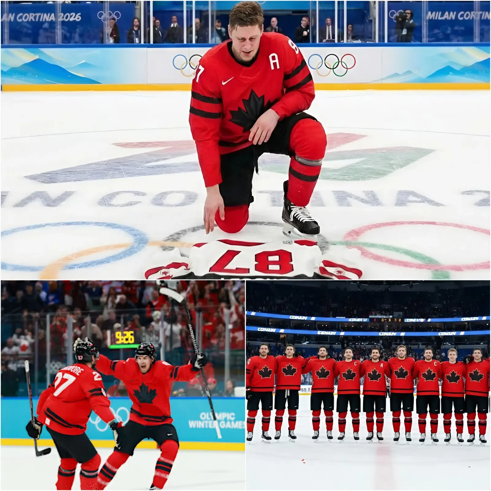 It was a gesture that transcended rivalry. Within minutes, images of the scene spread across the world. Commentators struggled to find words. Fans called it one of the most powerful Olympic moments in recent memory. Not because of the comeback. Not because of the golden goal. But because of what followed. What made the scene unforgettable was its sincerity. In the biggest moment of his night — perhaps of his career — Nathan MacKinnon didn’t claim the stage for himself. He honored the leader who helped build the foundation beneath him. Canada earned a 3–2 victory.
