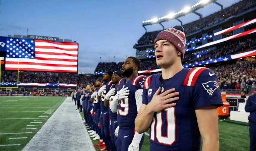 Looking back, no one anticipated this twist. Pre-game ceremonies are usually predictable—celebrity singers, military tributes, standard pomp. But when the quarterback steps up and delivers something so sincere, it shifts everything. Drake Maye didn’t just sing the national anthem; he embodied what it means to represent something greater. In a divided world, he united 65,000 fans in a single, tearful moment of shared patriotism and pride.