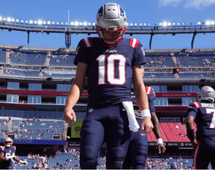 Maye, known more for his rocket arm, poise under pressure, and leadership qualities than for any vocal talents, approached the podium with the same calm confidence he brings to the huddle every Sunday. Dressed in his Patriots jersey, the young quarterback stood tall, the stadium lights reflecting off his helmet as he waited for the music to begin. What followed was a performance so raw, so heartfelt, that it transcended sports and touched something deeper in everyone present.
