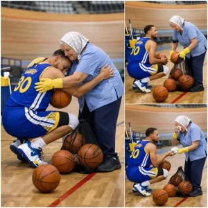 Curry kneels before a janitor. The moment unfolded quietly, almost invisibly at first, just minutes after the final buzzer of a tense game…