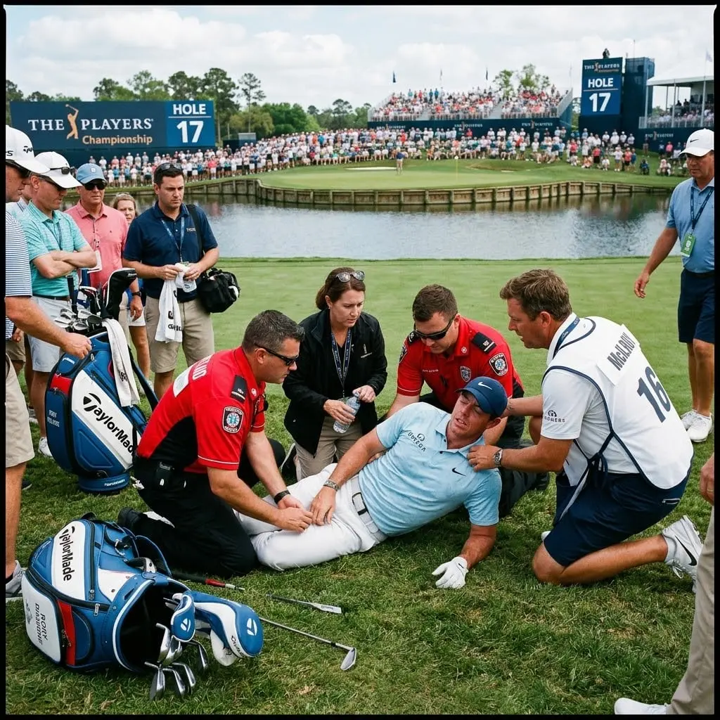 Shock rippled through the media center at TPC Sawgrass late Saturday afternoon when Rory McIlroy collapsed during what was expected to be a routine press conference following the third round of the Players Championship. The room fell silent as confusion spread instantly.
