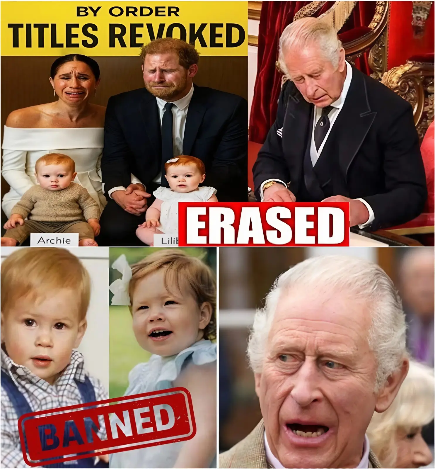 In a move that has stunned the world and shattered what remained of the Sussexes’ ties to the British Crown, Buckingham Palace confirmed late last night that Prince Harry and Meghan’s two children, Archie and Lilibet Diana Mountbatten-Windsor, aged six and four, have been formally removed from the line of succession, stripped of their princely titles, and erased from the official royal bloodline.