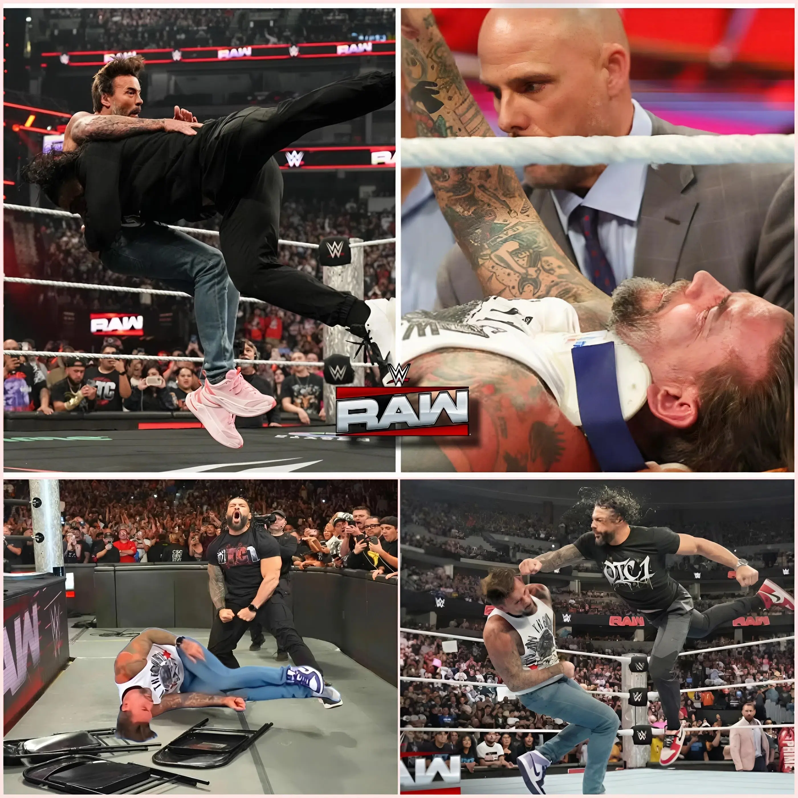 Meanwhile, Punk lay motionless for several moments before slowly being attended to. The visual of him struggling to recover added emotional weight to the aftermath, highlighting the brutality of the encounter.
