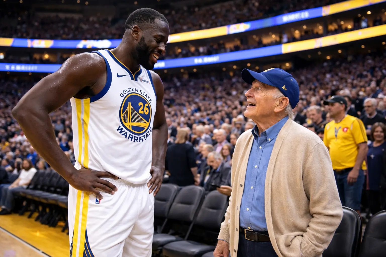 The entire arena seemed to fall silent as the unexpected moment unfolded. Fans leaned forward in their seats, curious about what the man wanted and why Draymond Green had chosen to intervene.