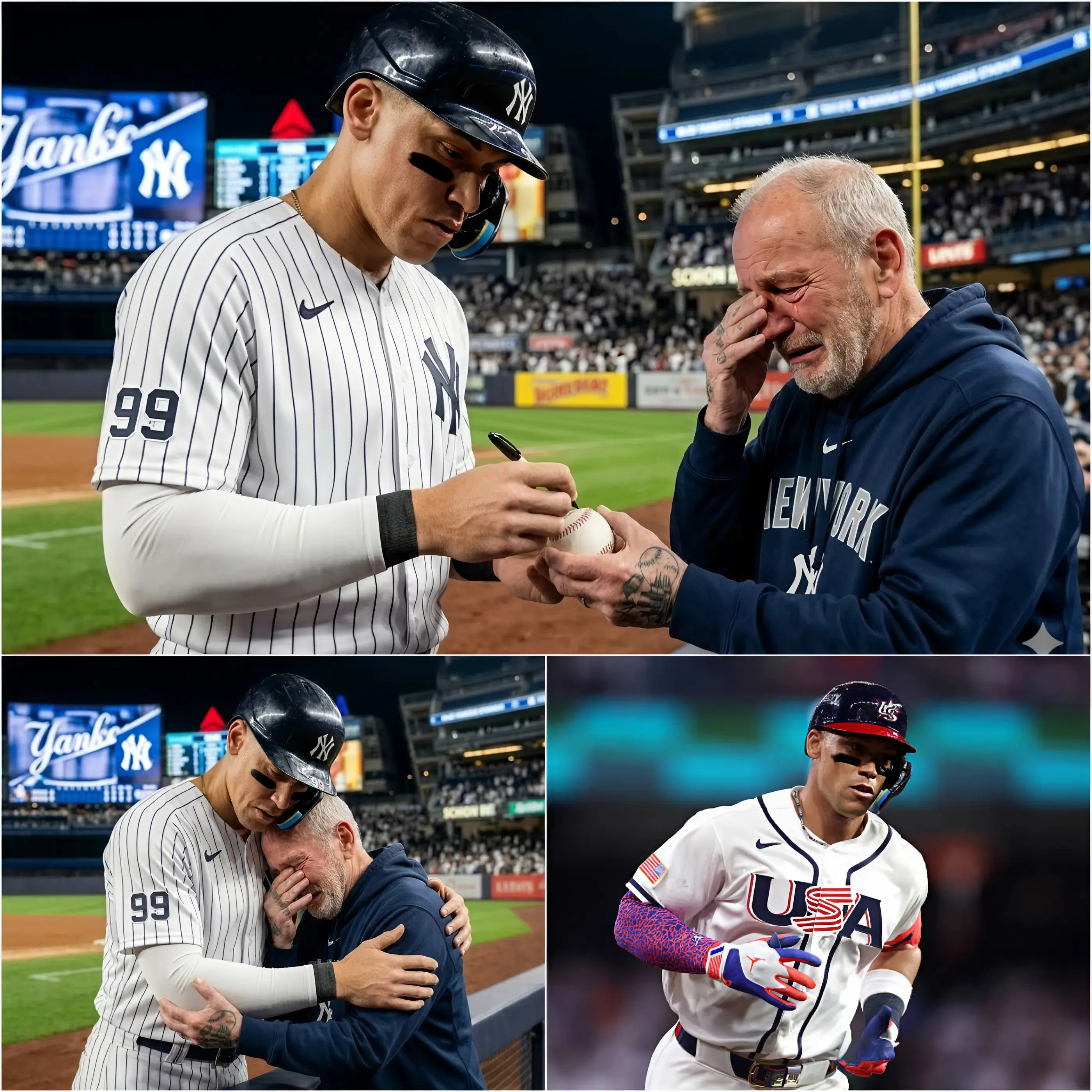 Judge listened intently. There was no rush, no forced pleasantries, no scanning for distractions—just the quiet, focused attention of a professional athlete who understood the profound impact his career had on his supporters. His calm, steady gaze met the man’s, and a soft smile tugged at the corners of his mouth. In that moment, the stadium lights, the cheering fans, and the entire tournament seemed to fade away. What remained was the connection between a player and a fan—a connection that transcended stats, home runs, and victories.