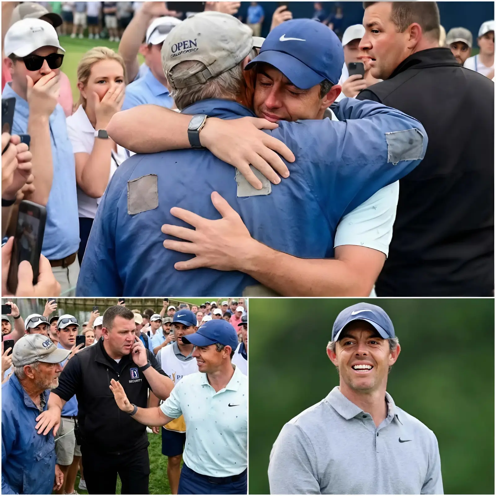 The security guards hesitated, exchanging uncertain glances. McIlroy’s caddie, Harry Diamond, and several PGA Tour staff members nearby also froze. Hundreds of spectators, many already filming the post-tournament interactions on their phones, held their breath. To everyone’s surprise — including those closest to Rory — the guards stepped back. The man was allowed to approach.
