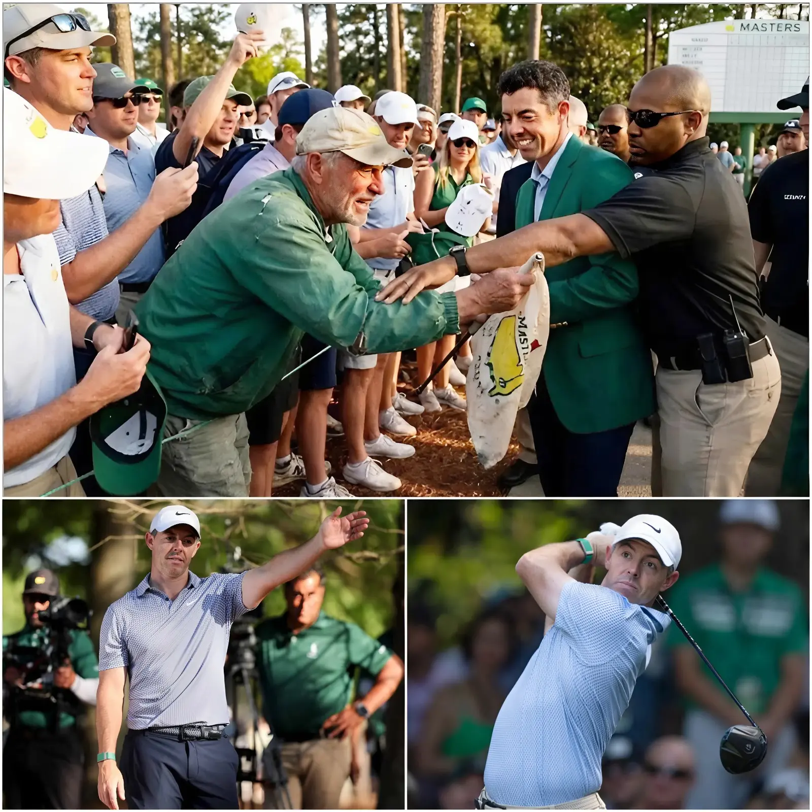 Security staff tried to stop him, but Rory McIlroy calmly raised his hand and said, “Let him come closer.” This moment unfolded during a fan meet-and-greet after the second round of the Masters Tournament at Augusta National. A man in his sixties pushed through the excited crowd while Rory greeted supporters with his usual warmth. Security intervened quickly due to concerns over safety or an overly eager admirer. Yet McIlroy’s composed gesture changed everything in an instant.