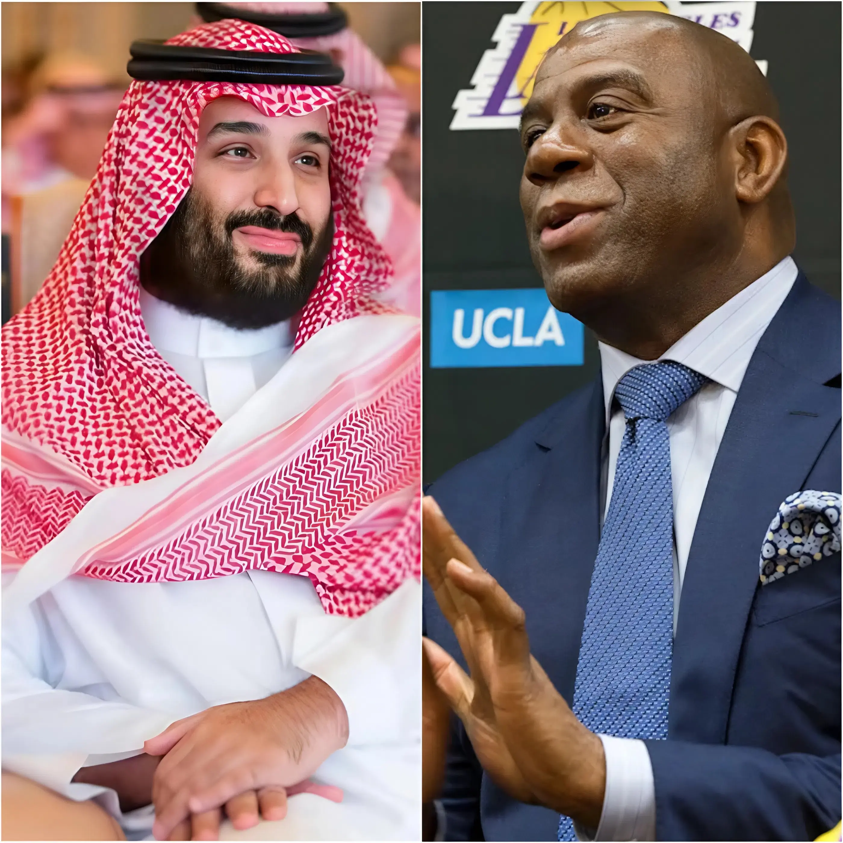 🚨 SHOCK THE WORLD: A Saudi billionaire kneels before Magic Johnson, begging him to “leave America and come play in Saudi Arabia” with the BIGGEST contract in sports history: $1 BILLION in cash + $500 MILLION a year for 10 years! 💰 The 80,000-seat stadium, dubbed the “Johnson Desert Dome”, is ready, with each tournament victory bringing an additional $100 million in bonuses. Sheikh Khalid begs: “You will be the KING OF THE DESERT, don’t miss your chance!” But in just 30 seconds, Magic Johnson’s answer left the ENTIRE basketball world speechless and in tears.