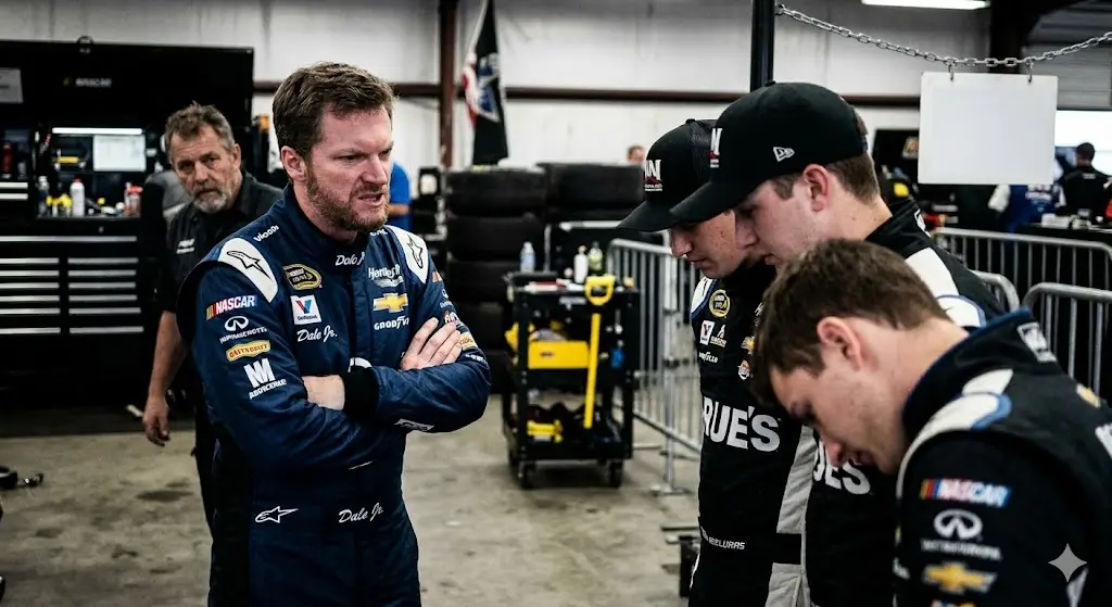 SHOCKING NEWS has emerged from the NASCAR world as Dale Earnhardt Jr., one of the sport’s most respected figures, has reportedly taken drastic action against a group of young stars. According to multiple sources, Earnhardt Jr. has permanently banned several rising drivers for mocking a disabled war veteran backstage. This decisive move has stunned fans and insiders alike, sparking widespread discussion about respect, accountability, and the standards expected in professional sports. “There is no place for contempt toward those who have sacrificed!” Earnhardt Jr. emphasized, making it clear that such behavior would not be tolerated under any circumstances.