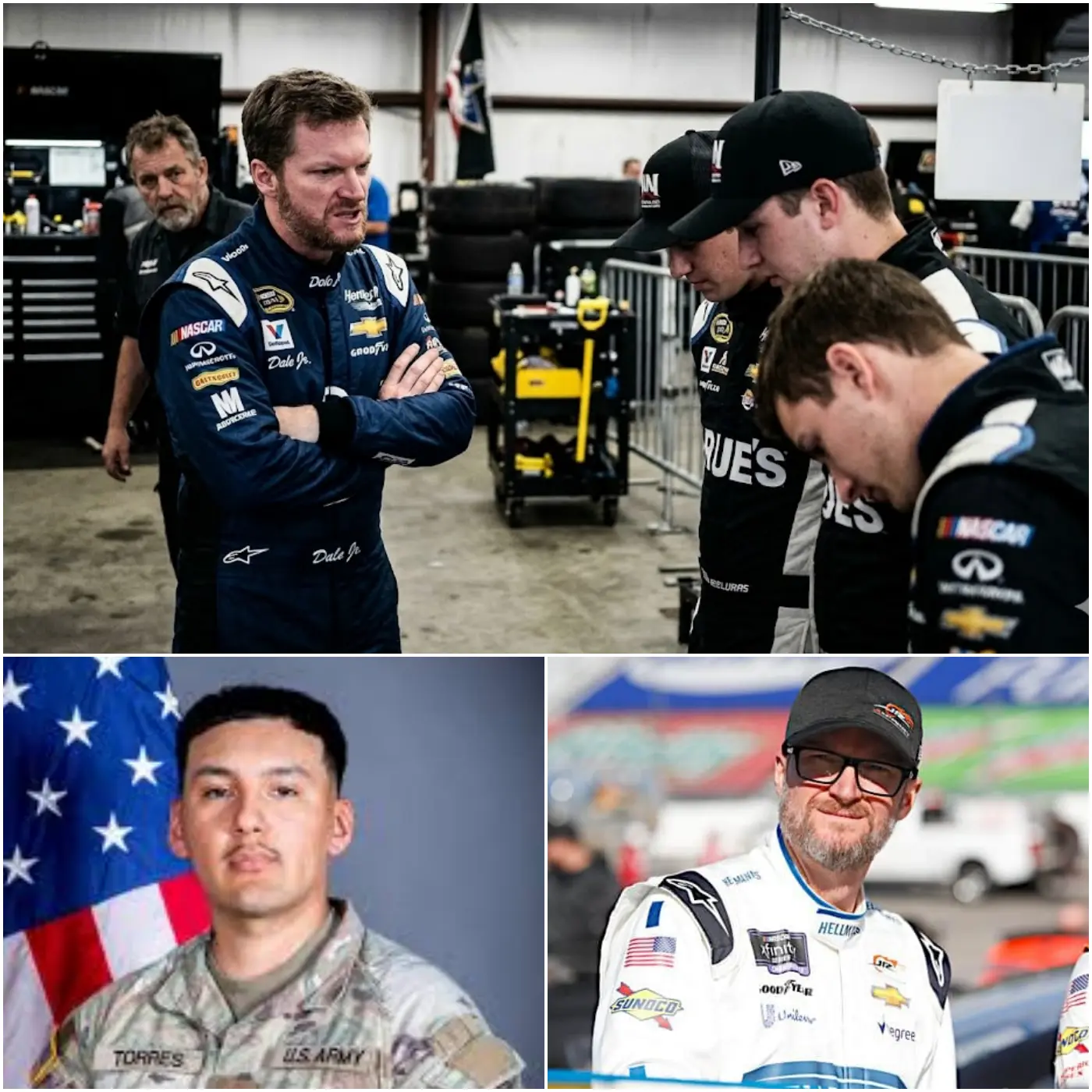 The incident allegedly took place during a private backstage gathering at a recent NASCAR event. Witnesses claim that the young drivers made derogatory remarks about a veteran who had sustained severe injuries during military service. These comments, while initially dismissed as joking among peers, reportedly reached the ears of Dale Earnhardt Jr., prompting an immediate response. The seriousness of the veteran’s injuries and the blatant lack of respect demonstrated by the drivers intensified the situation, showing a stark contrast between the professional image NASCAR strives to maintain and the reckless actions of these rising stars.