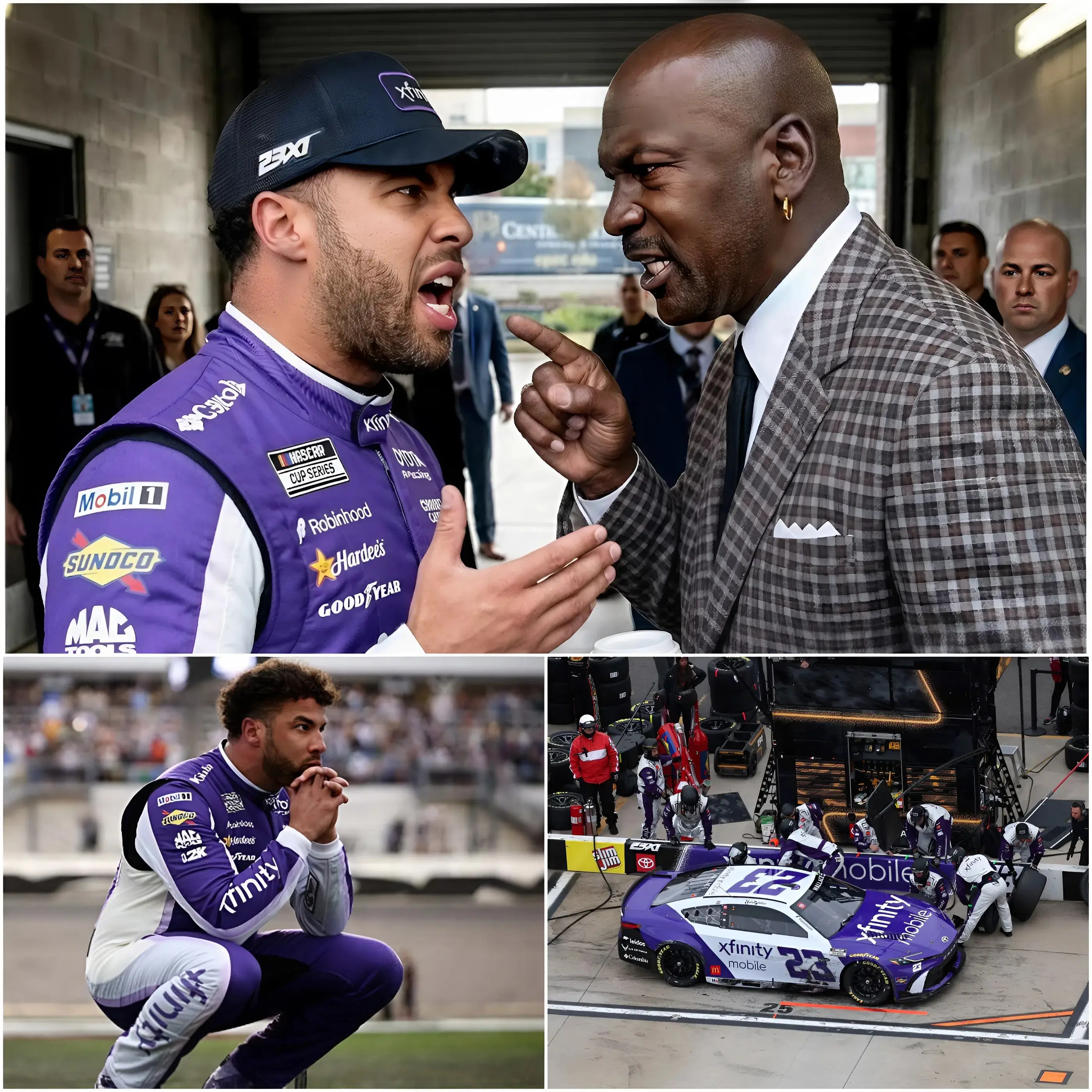 Standing in front of cameras, visibly agitated and still in his racing suit, Wallace didn’t hold back. His opening words — sharp, emotional, and unfiltered — immediately captured global attention. Calling Michael Jordan a “NASCAR puppet,” Wallace accused the team leadership of being disconnected from the realities on track, suggesting that decisions were being made more for image and control than for performance.