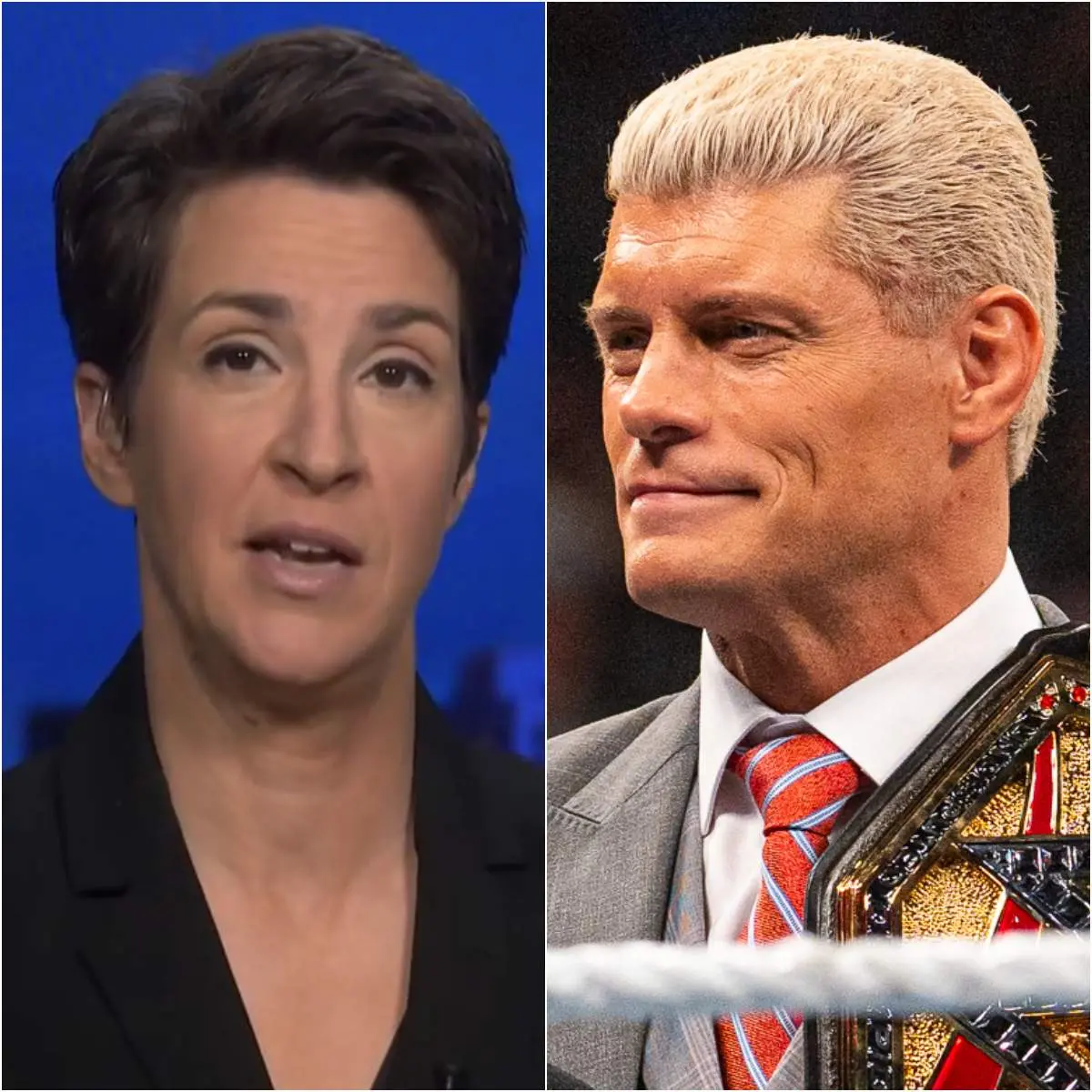 Rachel Maddow, the MSNBC anchor invited as part of a special crossover panel on sports, culture, and social responsibility, leaned into her microphone. Her voice cut through the celebratory hum like a cold blade. “Cody Rhodes,” she began, eyes fixed on the champion, “you’ve been called the face of WWE, a role model for millions. Yet you refused to headline your organization’s LGBTQ+ awareness campaign this year—a Pride Month initiative backed by major networks, including ours. Some are calling that decision a betrayal of inclusivity. Are you a traitor to the progress wrestling has made on these issues?”