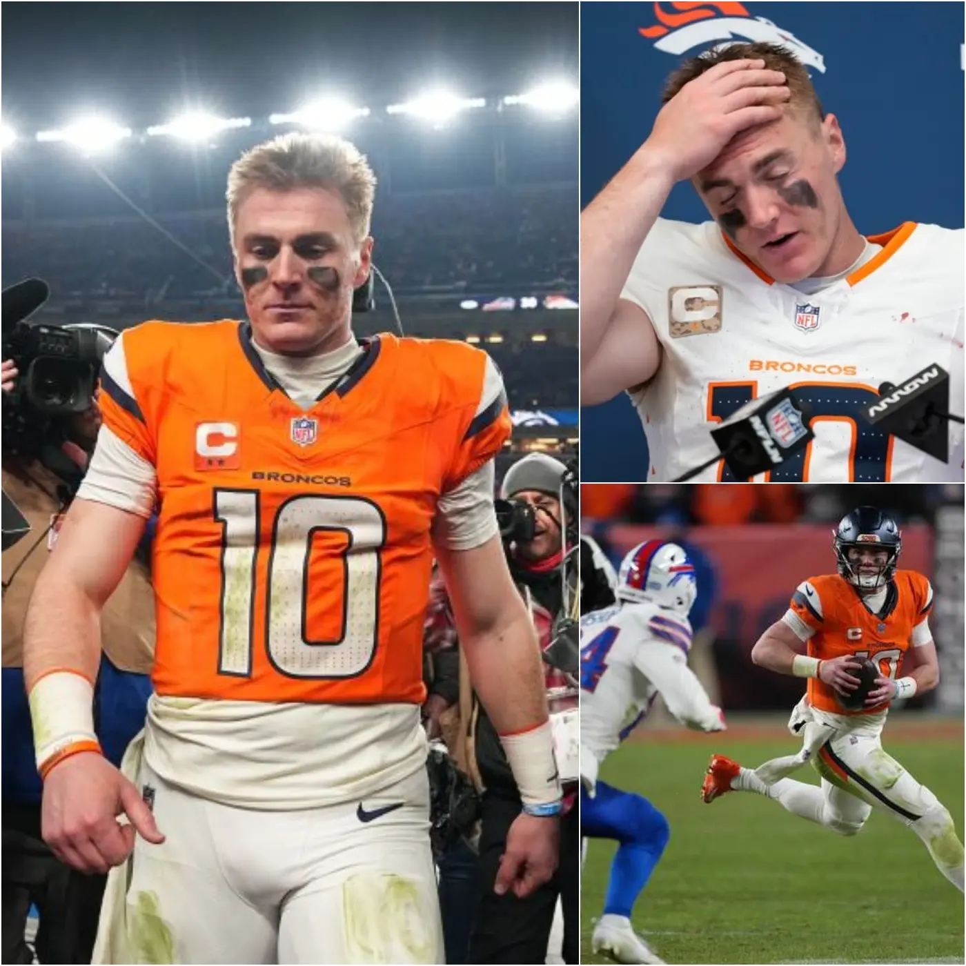 The stadium lights at Gillette Stadium were still burning late into the night, but for Bo Nix, the glare felt heavier than ever. The Denver Broncos had just walked off the field after a devastating Game 4 defeat against the New England Patriots, a loss that cut far deeper than the scoreboard suggested. What followed was not a routine postgame interview or a carefully rehearsed statement from a franchise quarterback. Instead, it was a moment of raw humanity that sent shockwaves through the football world.