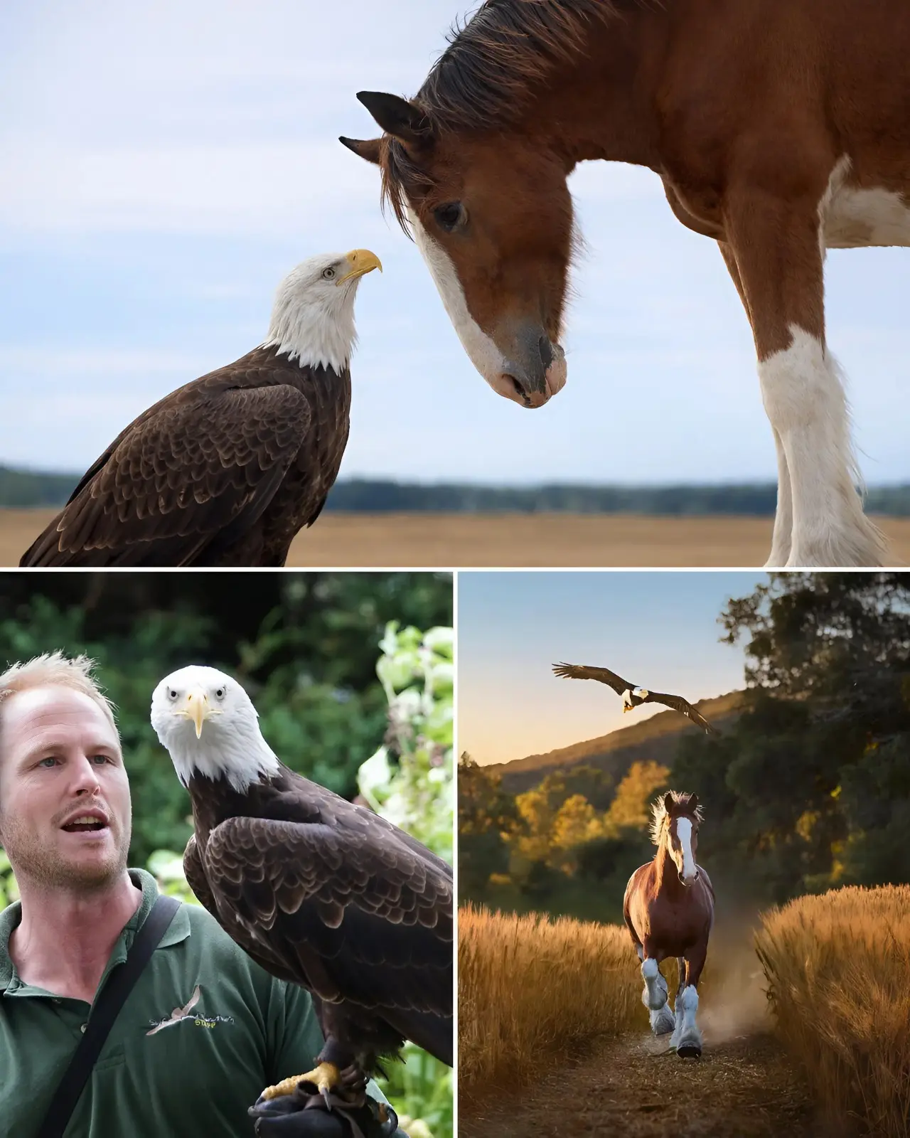 Lincoln’s head lifted. His wings shifted, testing the air. Then, without rehearsal or prompting, they opened fully—broad, powerful, unmistakable. He launched. The flight was smooth, certain, undeniable: a low glide that rose into a wide circle above the field, catching the light just as the Clydesdale thundered below. The cameras captured it all—the horse’s stride, the eagle’s ascent, the perfect alignment of strength and grace. When the take ended, the set erupted in quiet applause, the kind reserved for moments that feel bigger than planned.