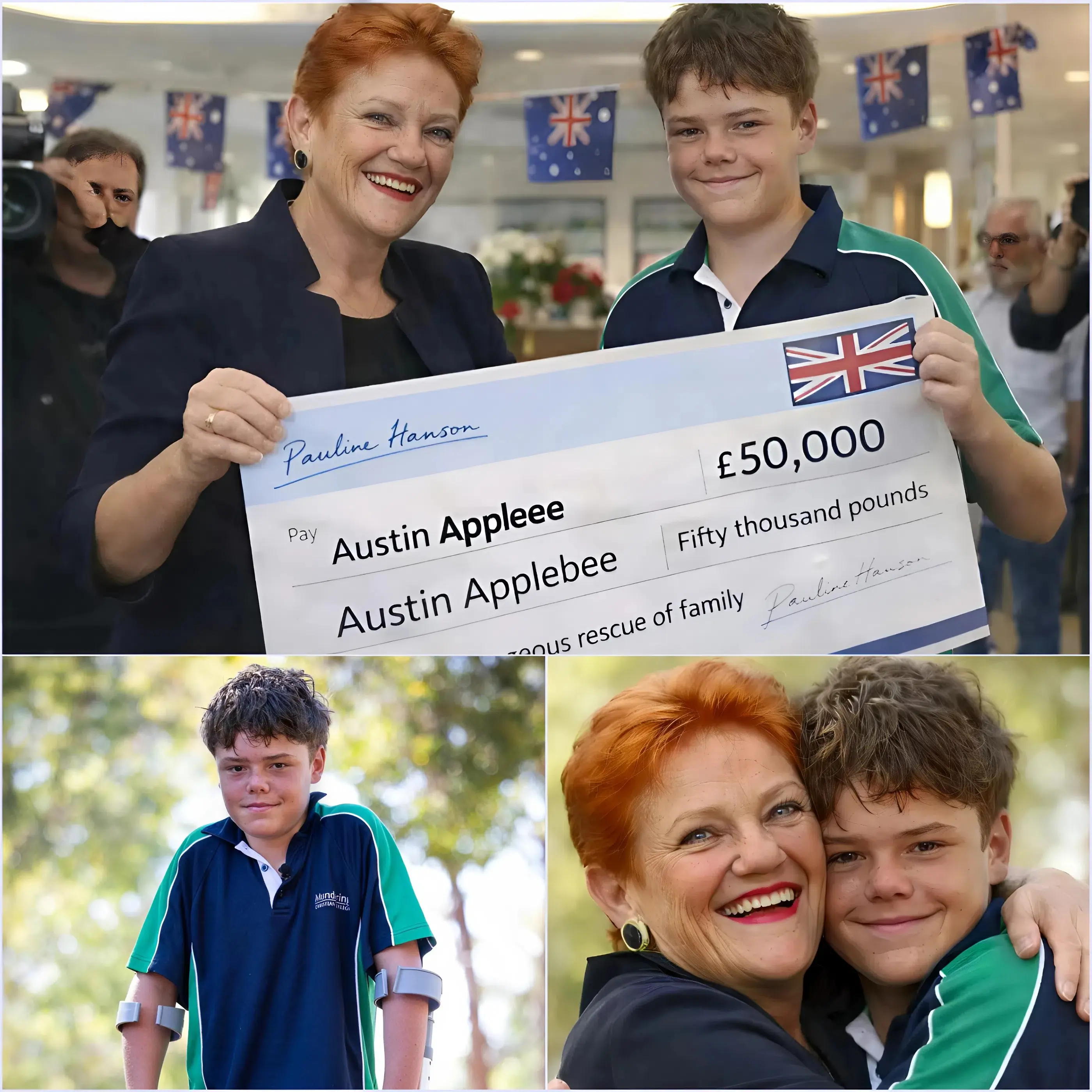 What was once a tragic and terrifying incident had now turned into a powerful symbol of courage, compassion, and hope. Austin Appelbee had shown the world that even in the darkest moments, there is always room for heroism. His story, one that transcended politics and social divisions, continued to inspire and move people across the globe. And thanks to the support he received, including the generous donation from Pauline Hanson, Austin was now on a path that would allow him to help others, just as he had once saved his family.