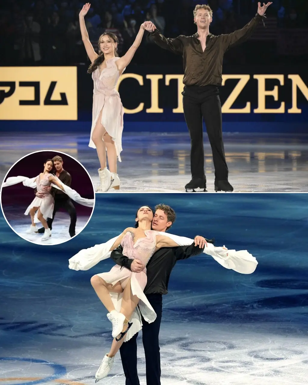 Midway through the program, a quiet pause drew particular attention. As the music softened, Chock and Bates held eye contact slightly longer than expected. The arena responded with stillness, followed by warm applause that filled the venue.