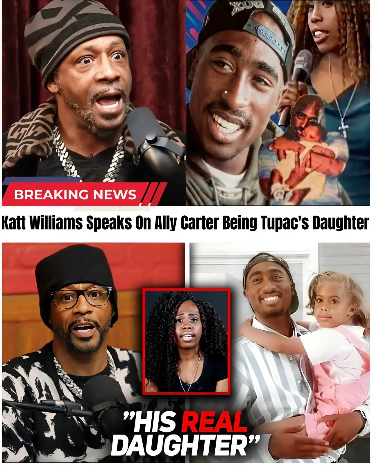 🚨 TUPAC IS ALIVE?! KATT WILLIAMS DROPS THE ULTIMATE BOMBSHELL! 😱The internet is SHAKING! Katt Williams just exposed Hollywood’s biggest secret, claiming Ally Carter is the ILLEGITIMATE DAUGHTER of rap legend Tupac Shakur! But it gets crazier… Katt hints Tupac faked his death, and Ally was actually swapped at birth by a nurse to hide the truth! Now, Ally is stepping forward to expose the elites. But the terrifying reason they hid Tupac’s bloodline involves…