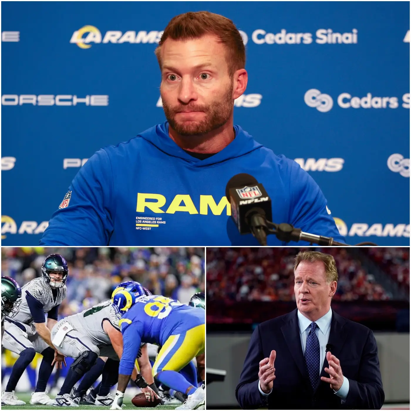 With a voice full of indignation, McVay declared in a last-minute press conference: “If the NFL does not conduct a doping test on the entire Seahawks team before the match starts, the entire Rams team will refuse to play. We demand fairness – we cannot let suspicion linger like this!”