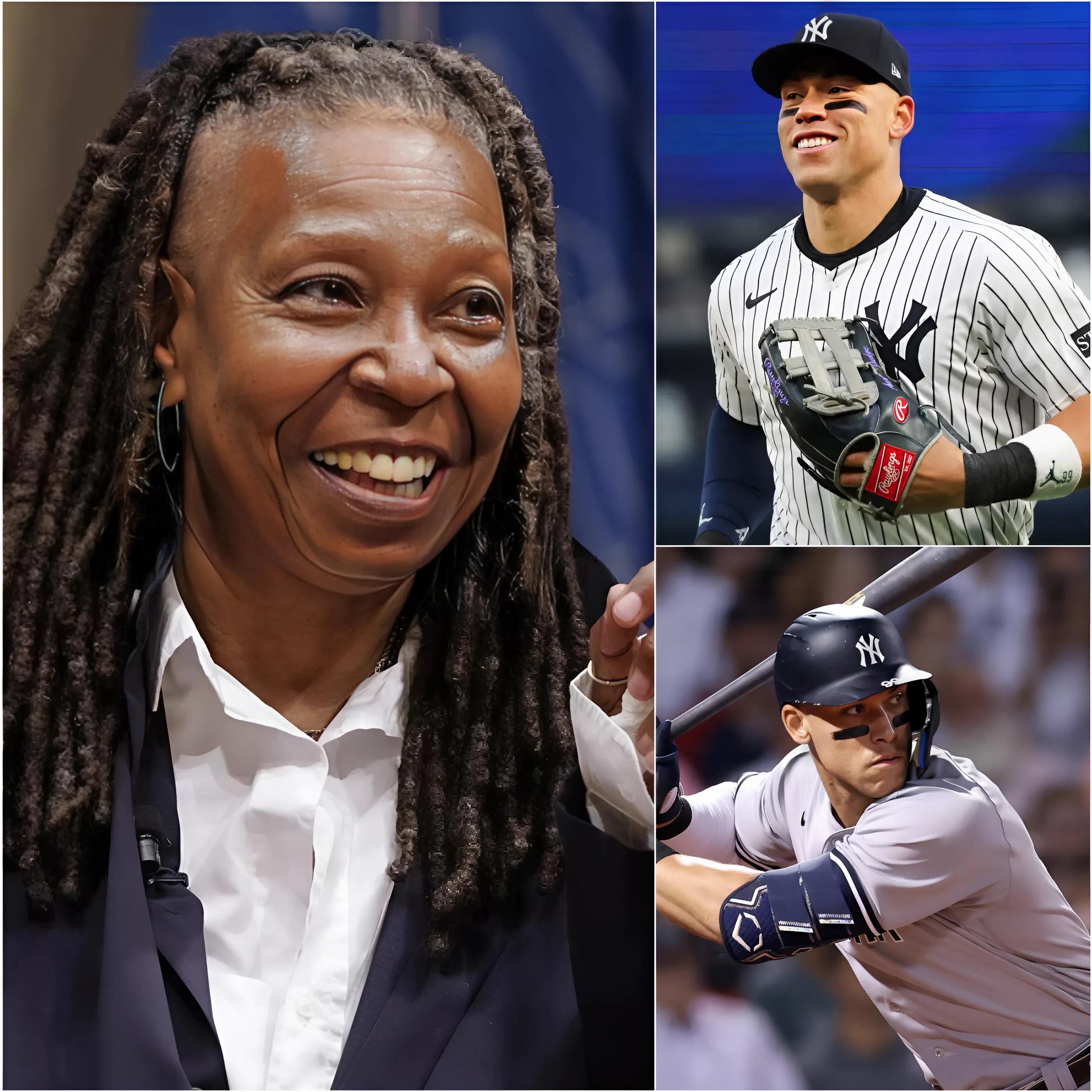 In a dramatic moment on The View, Whoopi Goldberg ignited controversy when she brushed aside Aaron Judge’s legacy with a single cutting remark. “You’re just a baseball player,” Goldberg said casually during a panel discussion. The studio immediately erupted, with murmurs from baseball fans in the audience escalating into a heated commotion. Within moments, tensions boiled over, and the scene nearly devolved into chaos.